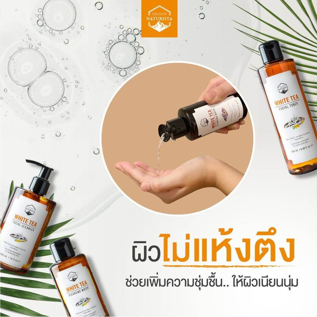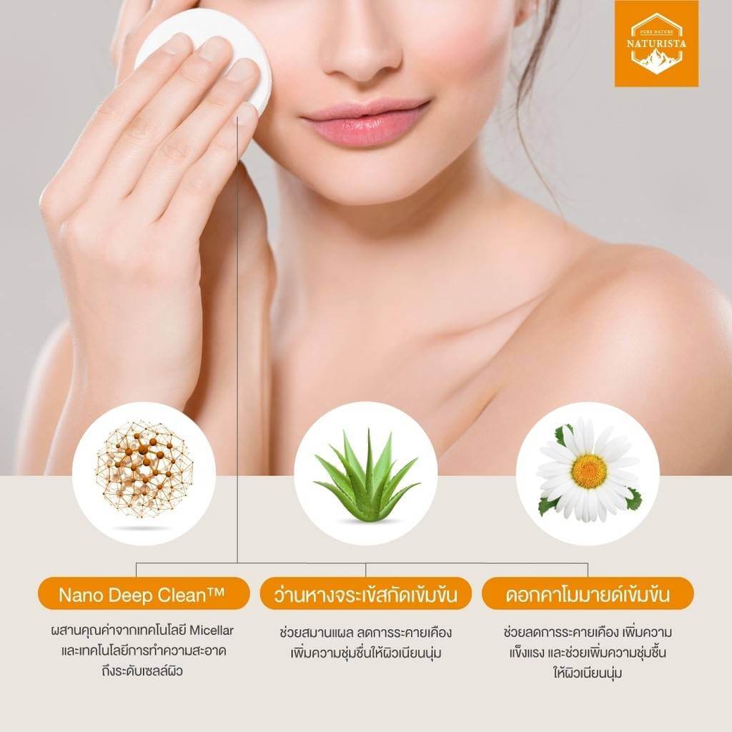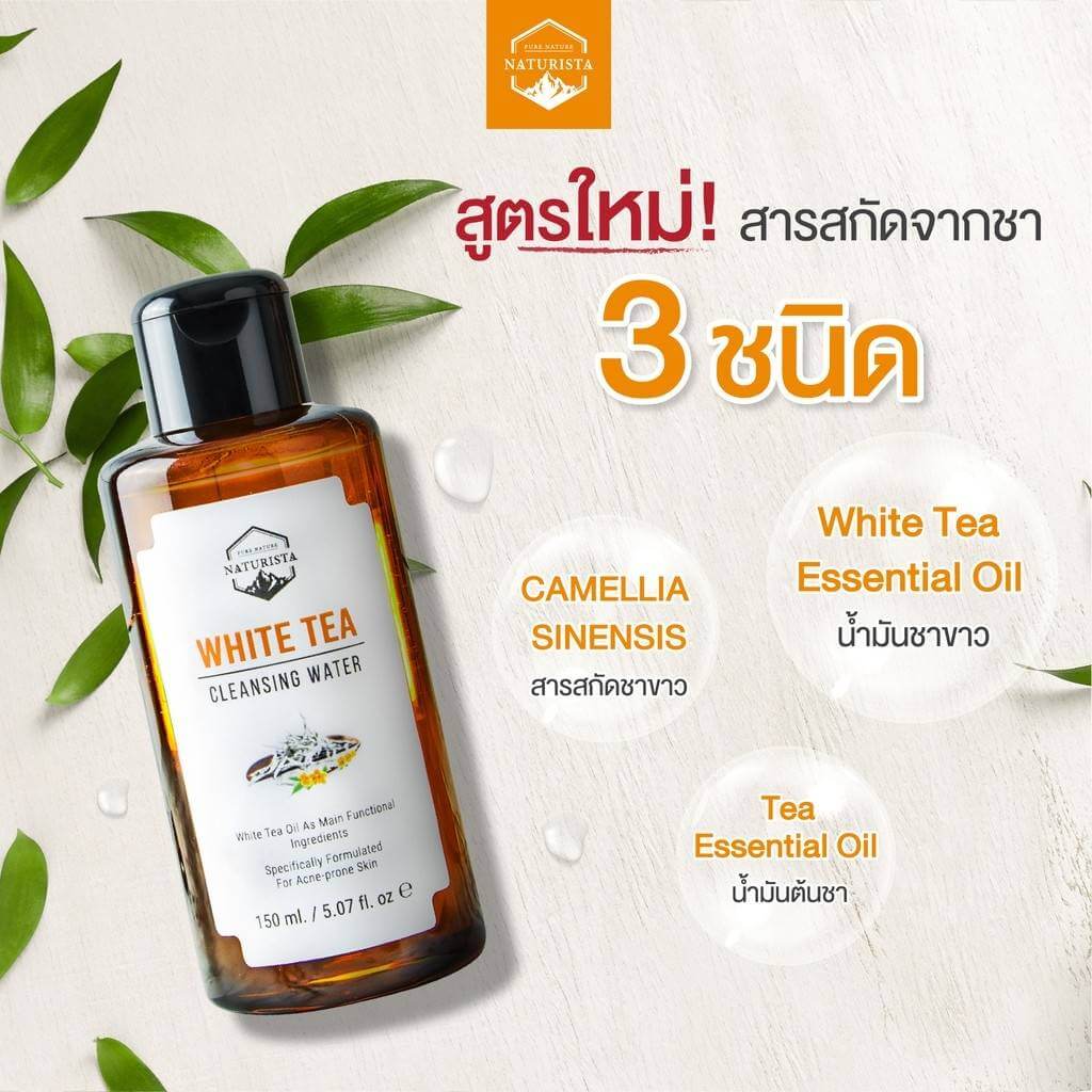 Naturista White Tea Cleansing Water คลินซิ่งเช็ดเครื่องสำอาง ทำความสะอาดล้ำลึก ด้วยเทคโนโลยี Nano Deep Clean ช่วยขจัดสิ่งตกค้างบนใบหน้าอย่างล้ำลึก ผสานคุณค่าจากเทคโนโลยี Micellar และเทคโนโลยีการทำความสะอาดถึงระดับเซลล์ผิว เอกสิทธิ์เฉพาะจาก Naturista ช่วยขจัดสิ่งตกค้างในชั้นรูขุมขน ต้นเหตุของปัญหาสิว เนื่องจากสิ่งสกปรกที่อุดตันบนใบหน้า